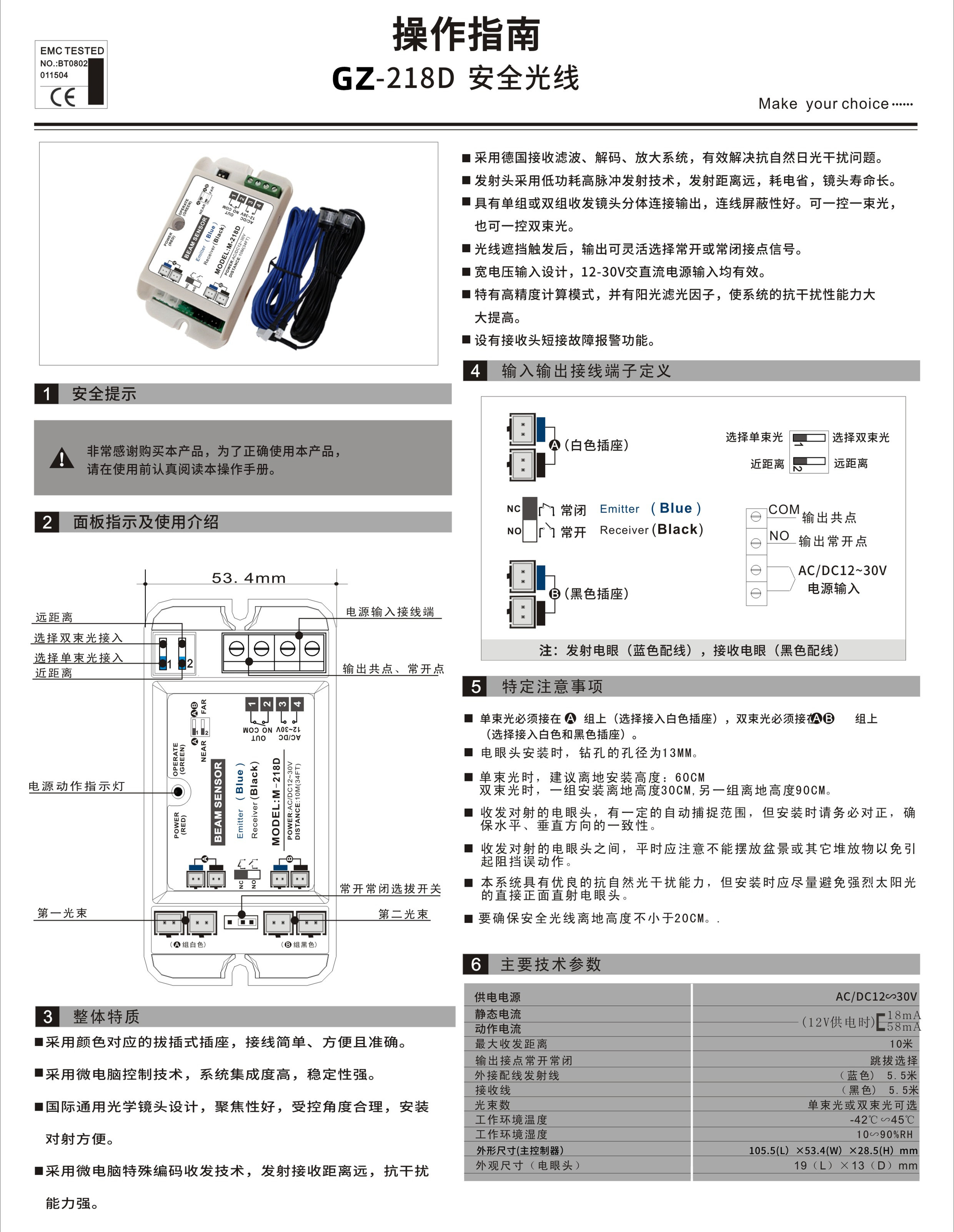 自动门三束光安全光线218H